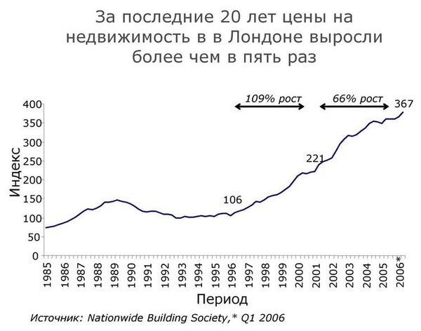 Цены на недвижимость в Лондоне, особенно в центральных районах, выросли на 20-30% с сентября 2005 г